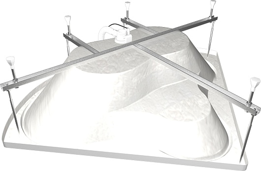 Комплектация включает не только акриловую ванну и инструкцию по применению, но также прочный каркас, усиливающий конструкцию, и слив-перелив.