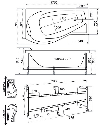 Акриловая ванна Triton Мишель L (левая).