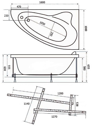 Комплектация: акриловая ванна, каркас, инструкция.