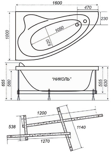 Комплектация: акриловая ванна, каркас, инструкция.