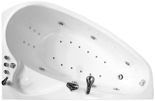 Соотношение сторон ванны составляет 160х104х33 сантиметра, высота с ножками достигается 60,5 сантиметров. Ассиметричная форма, как правило, предполагает правостороннюю установку.