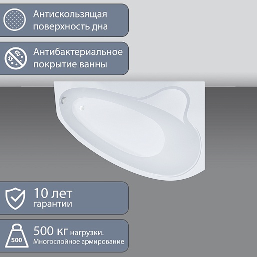 При изготовлении данной ванны была применена технология многослойного армирования, которая делает акриловое покрытие более прочным, а ванну – надёжной. Максимальный вес, который она выдерживает, достигает полутоны. Дно обладает антибактериальными свойствами, также препятствует скольжению даже в мокром состоянии.