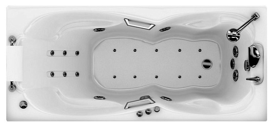 Конструкция ванны предполагает размещения многоточечных аэро- и гидромассажа по желанию клиента. Могут быть установлены и усиленные варианты Turbo, однако только совместно с боковым гидромассажем. По необходимости ванна может быть укомплектована ручками, подголовником, экраном и каркасом.