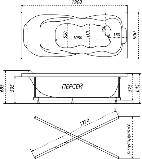 Персей Экстра – акриловая ванна в классическом прямоугольном исполнении. Соотношения её сторон составляют 190 на 90 на 46 сантиметров (высота на ножках – 64,5 сантиметра), что делает эту модель подходящим вариантом даже для малогабаритных ванных комнат. Объём вмещаемой жидкости достигает 300 литров.