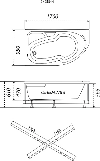 Акриловая ванна Triton София 170x95 L - арт. Щ0000046115.