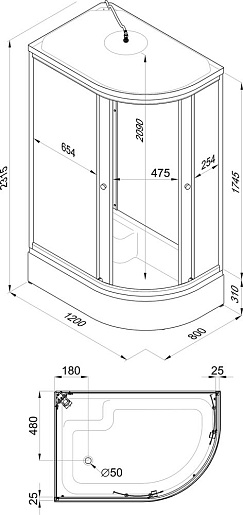В комплекте: душевая кабина, поддон, сифон.