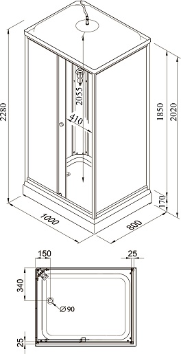 В комплекте: душевая кабина, поддон, каркас, сифон.