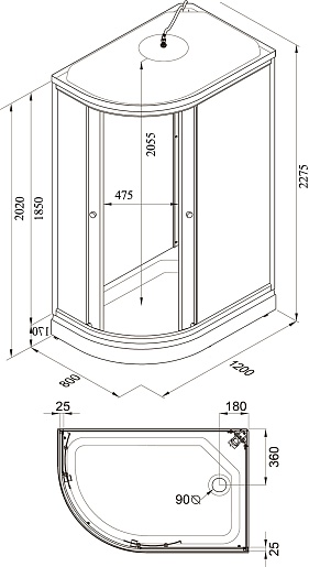 В комплекте: душевая кабина, поддон, каркас, сифон.