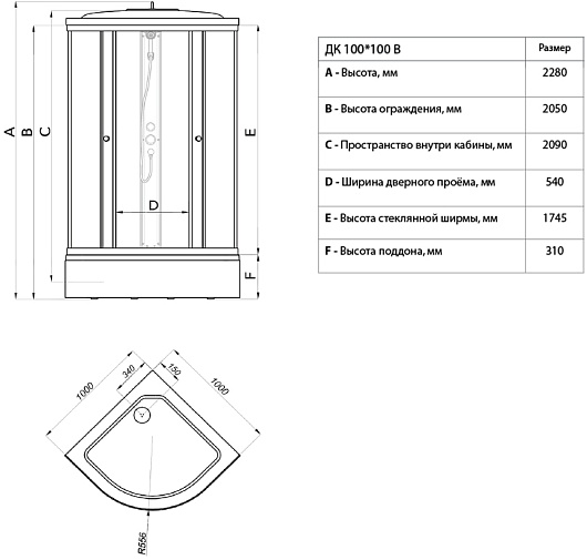 В комплекте: душевая кабина, поддон, каркас, сифон.