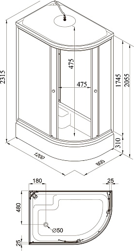В комплекте: душевая кабина, поддон, каркас, сифон.