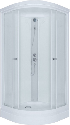 В комплекте: душевая кабина, поддон, сифон.
