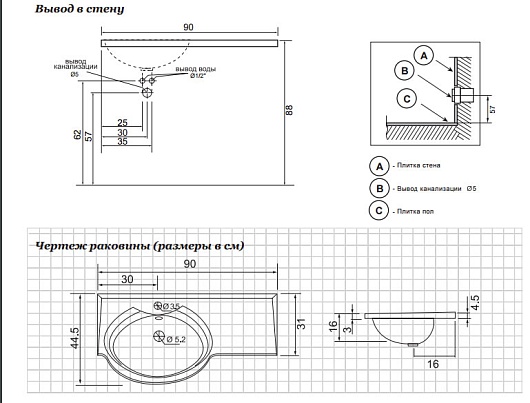 Цвет&Стиль Раковина "Комфорт 90" L