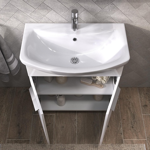 В комплекте: тумба, раковина, крепеж, ножка (3 шт.).