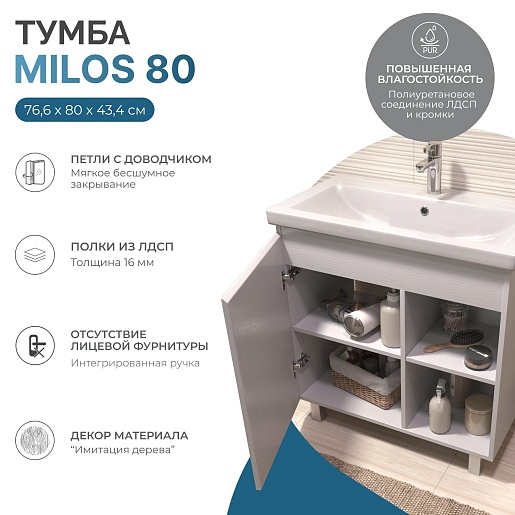 Тумба под раковину Milos 800-1-0 белая матовая