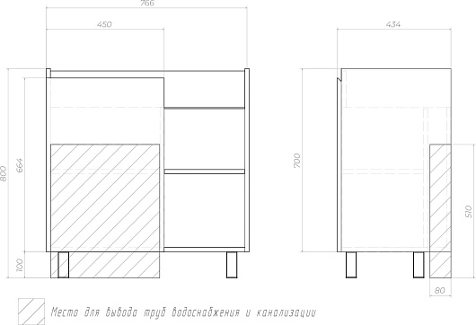- 1 распашная дверка, 2 открытые полки.