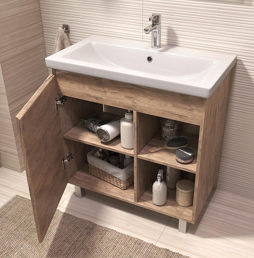 В комплекте: тумба, раковина, ножка (4 шт.), крепеж.