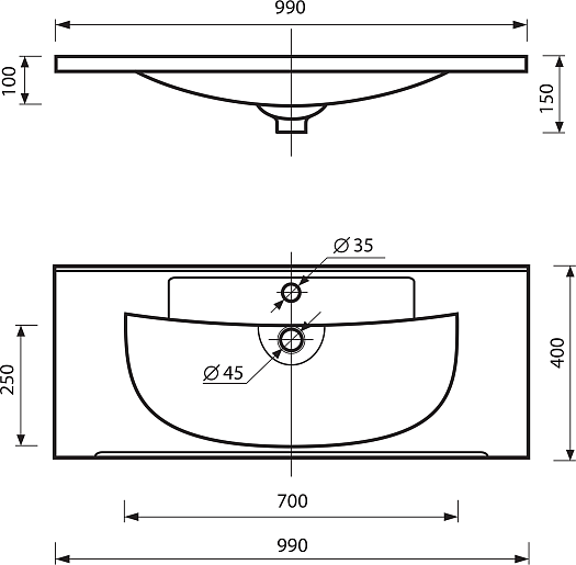 Подвесная тумба с раковиной Misty Модерн 100 - арт. П-Мод09100-011Пр / Р-Евв14100-Д.
