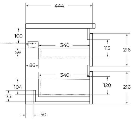 Два выдвижных ящика с фрезерованными ручками в плоскости фасада.