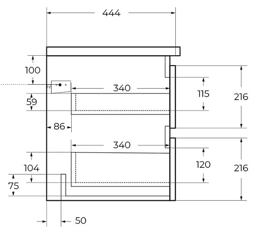 Два выдвижных ящика с фрезерованными ручками в плоскости фасада.