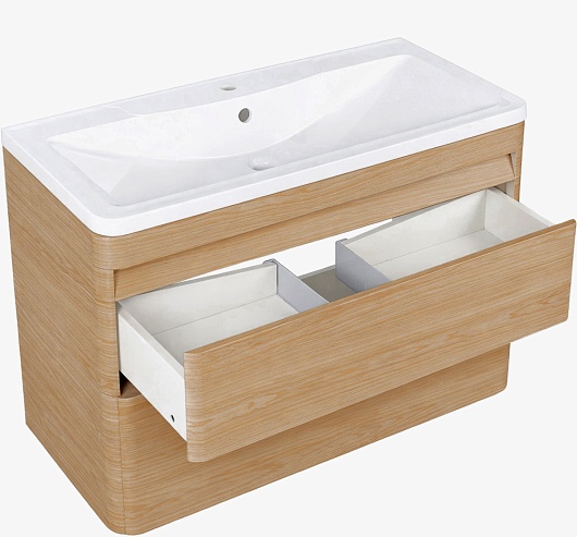 - Система хранения: 2 выдвижных ящика, оснащенных направляющими с механизмом плавного закрытия (доводчиками).