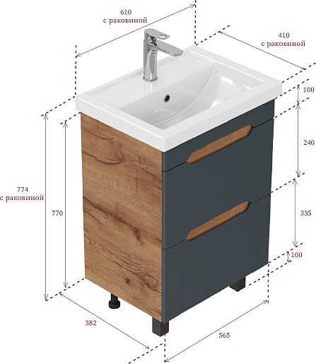 Onika Тумба под раковину Айленд 60 графит/дуб крафт