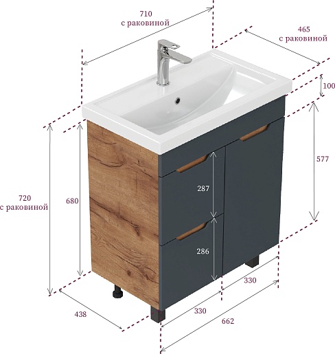 Onika Тумба под раковину Айленд 70 графит/дуб крафт