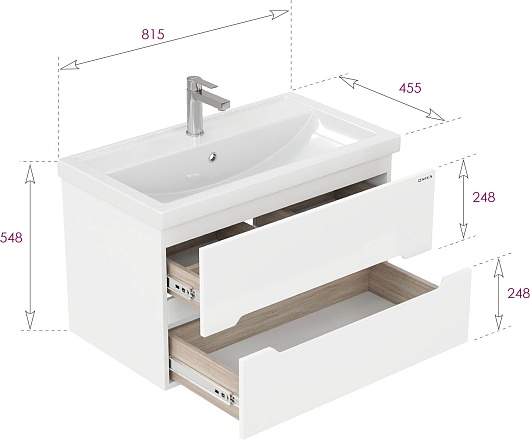 Onika Тумба под раковину Айленд 80 подвесная белая
