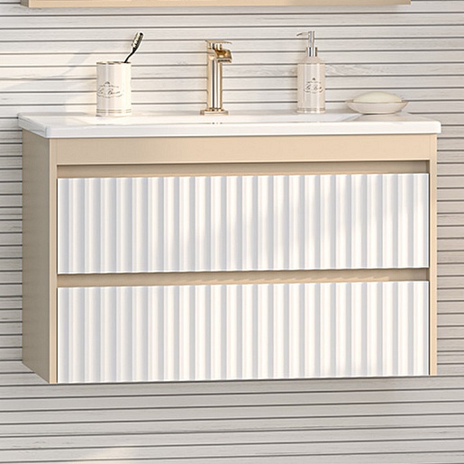 Brevita Тумба под раковину Balaton 90 подвесная белая/бежевая