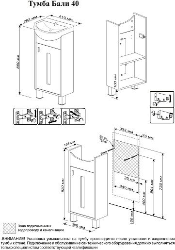 Комплектация: тумба под раковину, крепления, ножка (2 шт.).