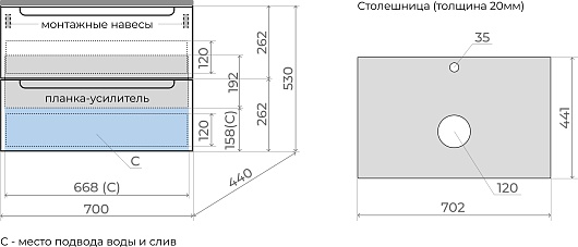В комплекте: тумба, крепления.