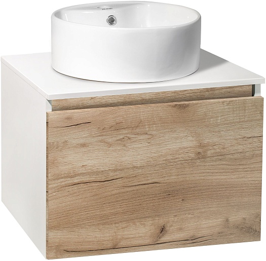 Runo Тумба под раковину Бари 60 подвесная дуб крафт/белая