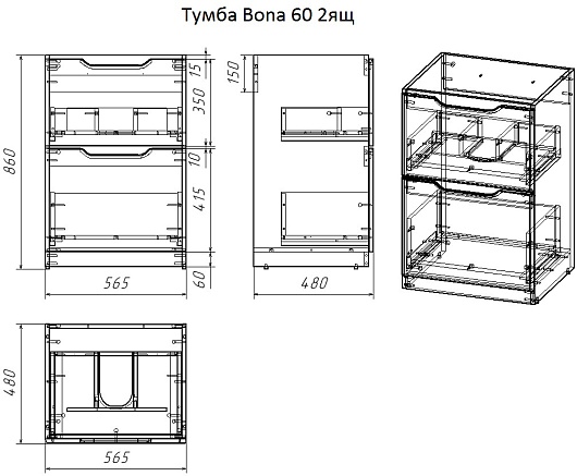 - 2 выдвижных ящика.