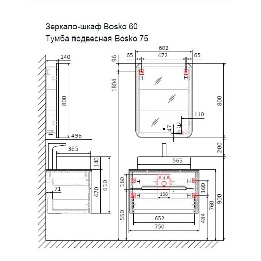 Jorno Тумба под раковину Bosko 75 белая Bos.01.75/P/W подвесная
