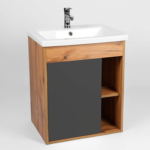 Viant Тумба под раковину Бостон 50 подвесная графит/дуб вотан