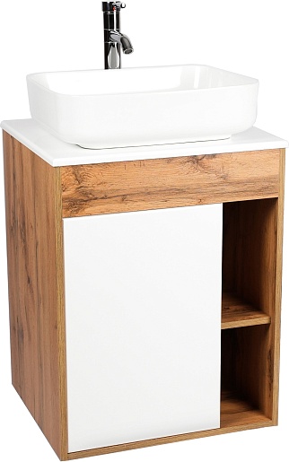 Viant Тумба под раковину Бостон 56 подвесная белая/дуб вотан