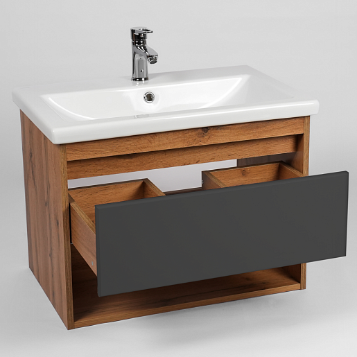 Viant Тумба под раковину Бостон 80 1 ящик подвесная графит/дуб вотан