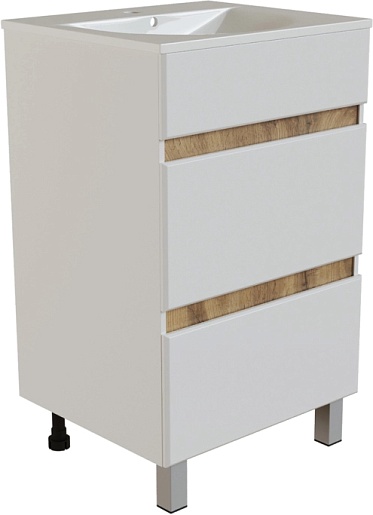 Mixline Тумба под раковину Брикс 60 2 ящика белая/дуб вотан