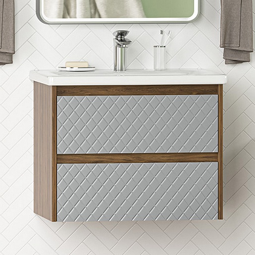 Brevita Тумба под раковину Chester 65 подвесная серый/дуб чарльстон темно-коричневый