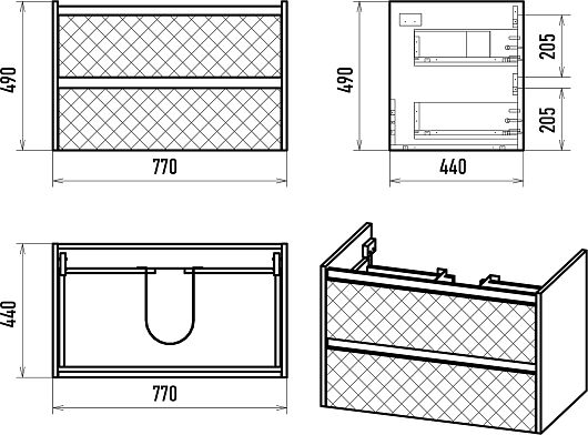 - Направляющие скрытого монтажа с механизмом плавного закрытия.