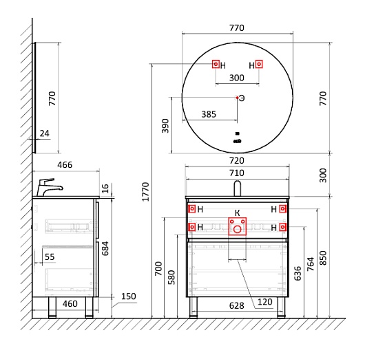 - Варианты крепления: напольное или настенное.