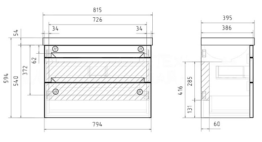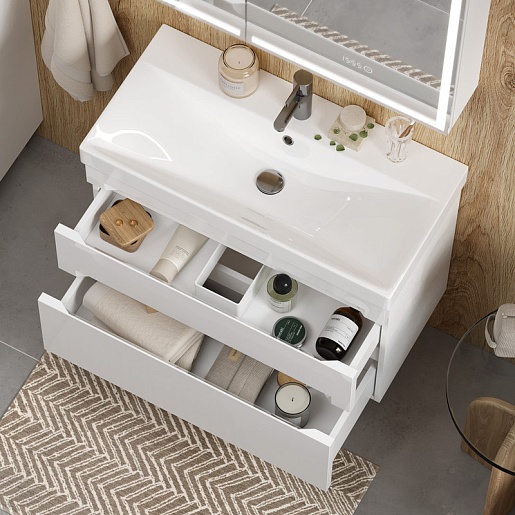 Equil Тумба под раковину Corner 80 2 ящика подвесная белая