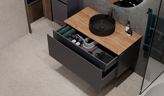 Jorno Тумба под раковину Cossety 100 подвесная антрацит/дуб Крафт золотой