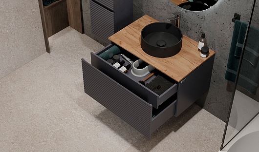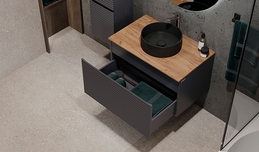 Jorno Тумба под раковину Cossety 80 подвесная антрацит/дуб Крафт золотой
