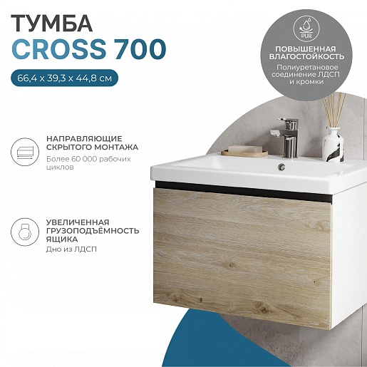 Vigo Тумба под раковину Cross 700-0-1 подвесная дуб давос натуральный