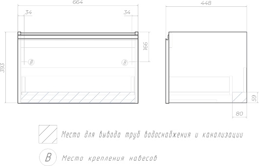 Подвесная тумба под раковину Vigo Cross 800-0-1 - арт. 405.