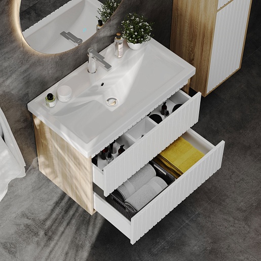 Onika Тумба под раковину Дайлер 80 подвесная белая/дуб сонома