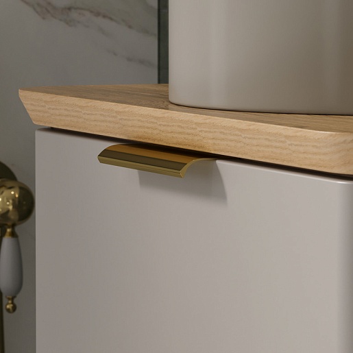 - Ящики тумбы открываются при помощи металлических ручек под золото.