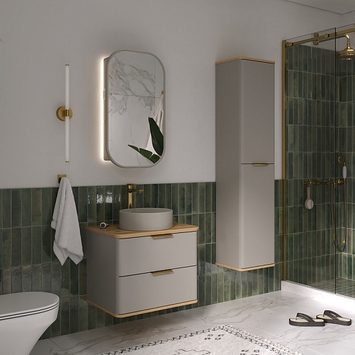 - Фасад и корпус тумбы изготовлены из МДФ в матовой пленке ПВХ с эффектом "Soft Touch".