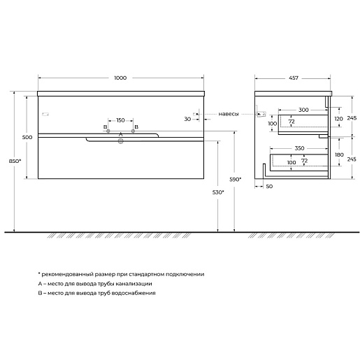 Габариты корпуса тумбы (ШхВхД): 1000х500х457 мм.