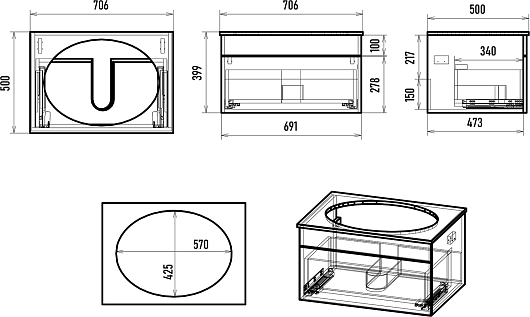 - Направляющие скрытого монтажа с механизмом плавного закрытия.